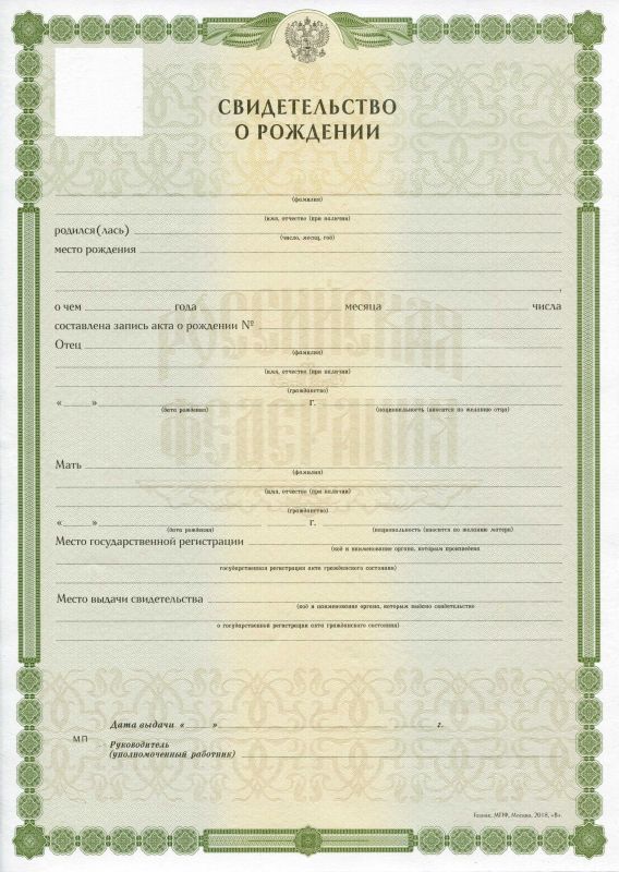 Свидетельство о рождении 2018-2025
