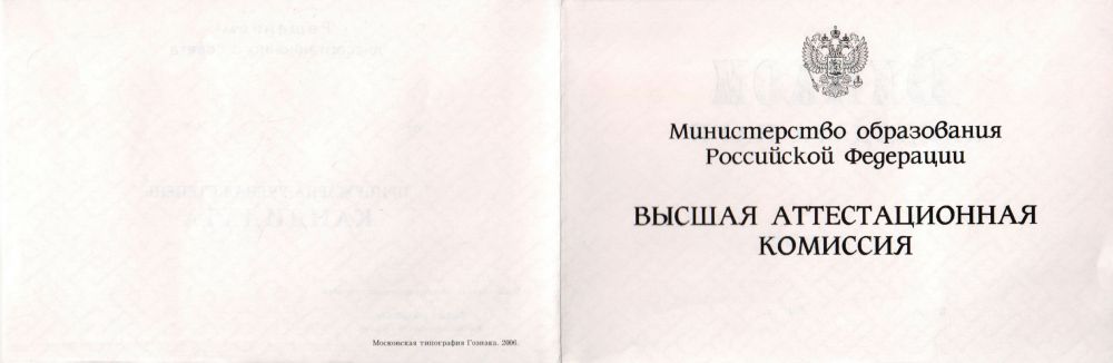 Диплом кандидата наук 2000-2005